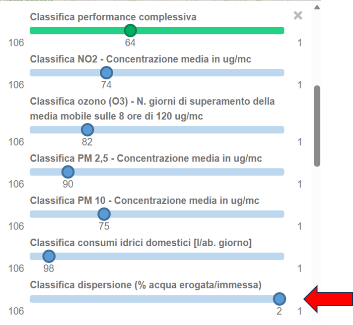 - Classifica Dispersione idrica (percentuale di acqua erogata rispetto a quella immessa) = posto Nr. 2 su 106